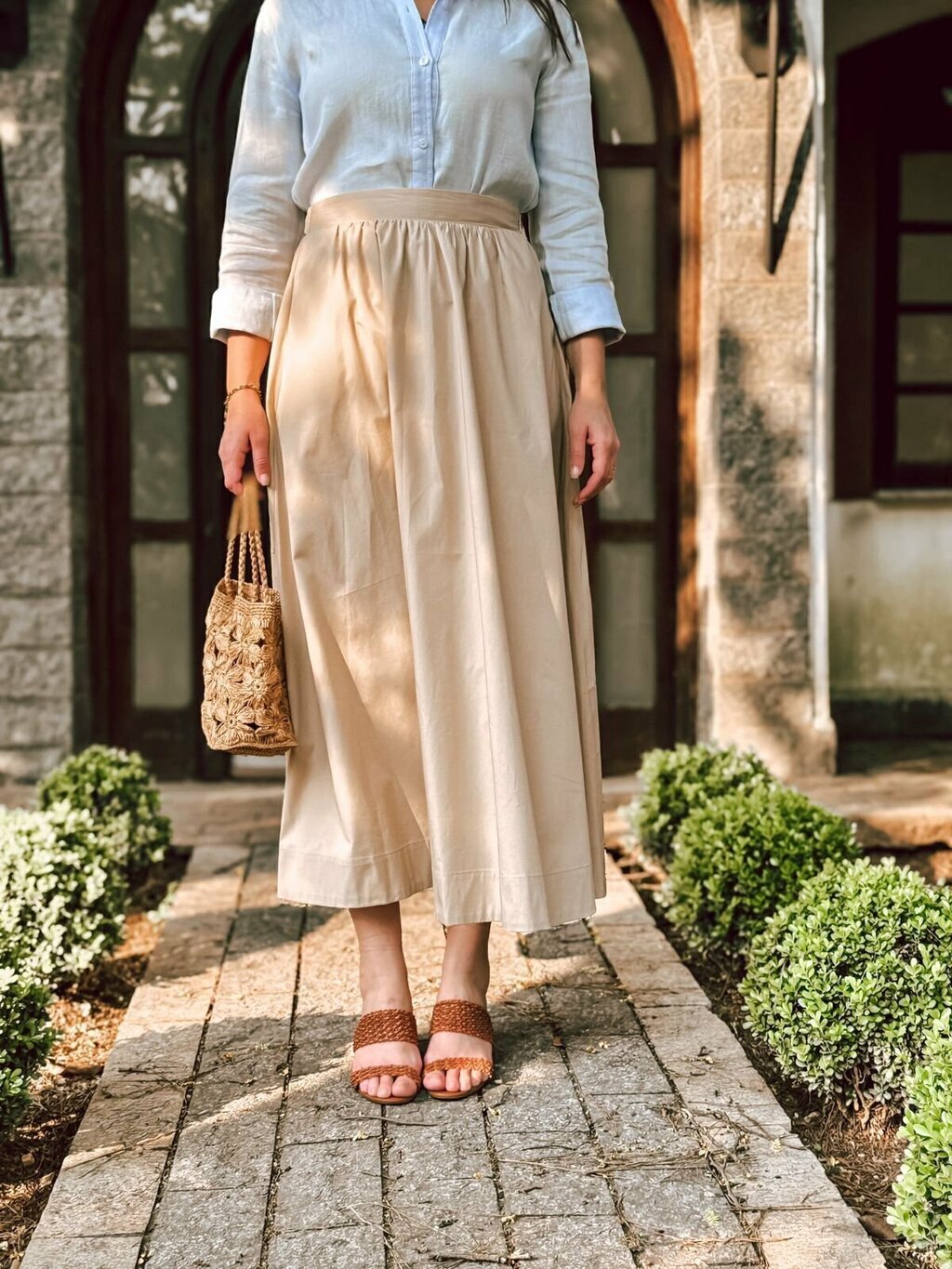 A saia Hepburn conta com elástico na parte de trás do cós.